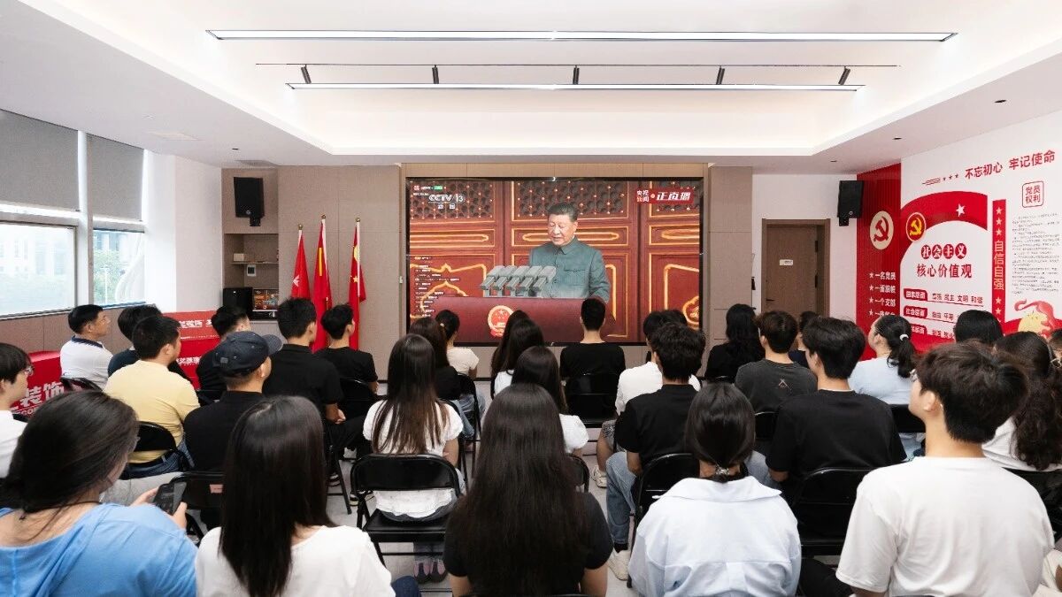 2025年9月3日,为纪念中国人民抗日战争暨世界反法西斯战争胜利80周年,一场盛大的阅兵式在北京天安门广场隆重举行。星艺南宁员工在公司领导的组织下,汇聚一堂,一起观看此次阅兵仪式直播,共同见证了这一激动人心的历史时刻。