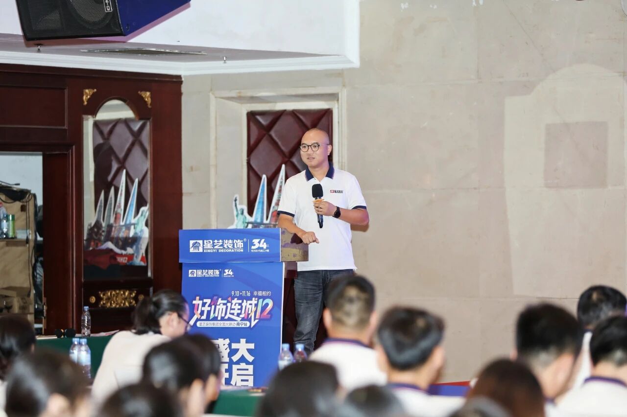 最后,星艺广西区域总监徐橘会议总结,徐总对此次启动会培训效果表示肯定,同时鼓励星艺各个部门的家人们学以致用,创新思维,开拓新获客渠道,提高服务品质,用心服务,将“星”品质带给每位业主。