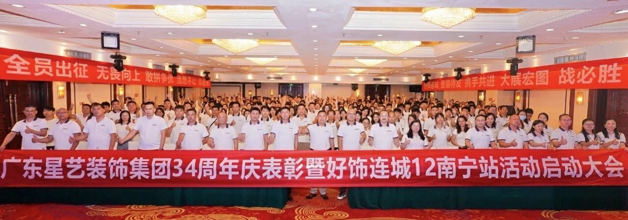 9月10日,星艺装饰“34周年庆表彰会暨好饰连城12(南宁站)”培训启动会在金旺角国际酒店隆重举行。星艺南宁区域四百多名家人们齐聚一堂,学习奋进、总结表彰、签订军令状,启动新征途。